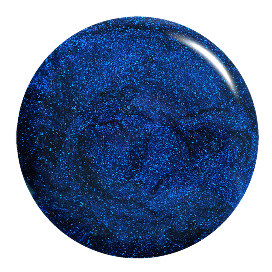 Pale blue sparkles surf along this royal blue polish.